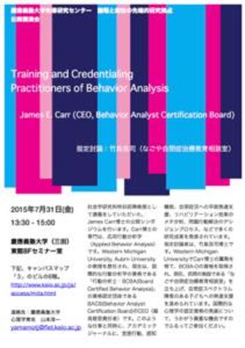 案内のPDFをダウンロード 山本淳一先生(慶應義塾大学)より以下の案内がありましたので転載します。 James E. Carr博士(Chief Executive Officer: Board Certified Behavior Analysis)公開講演会のお知らせです。 来週の7月31日(金)に慶應義塾大学にて、J…